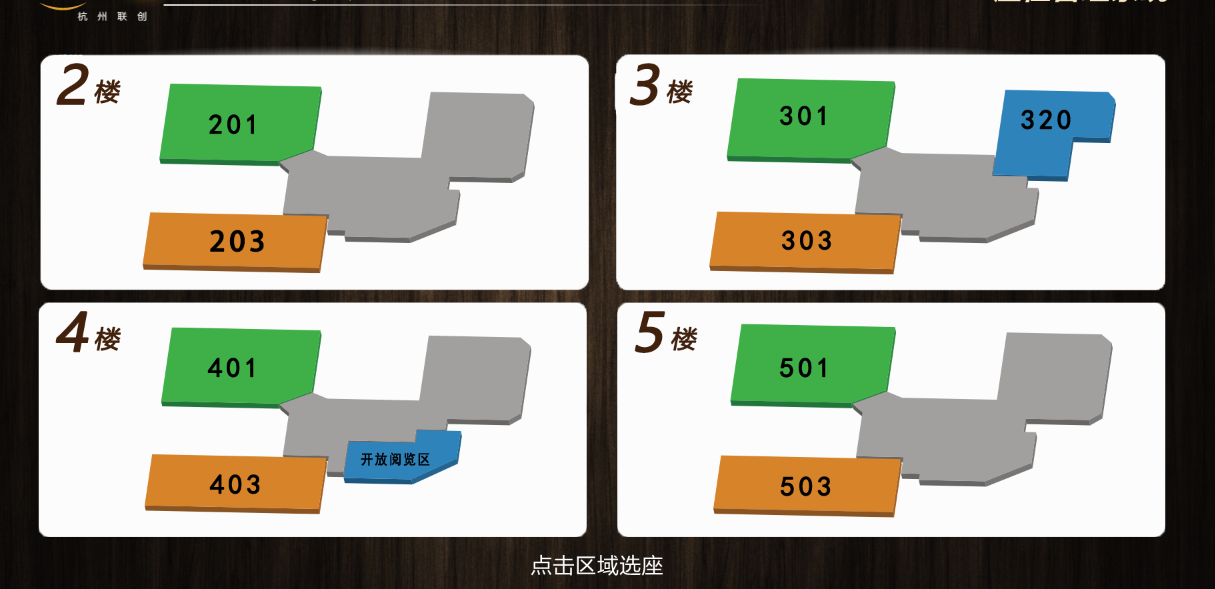 五楼:五楼A区、五楼B区、五楼V区;