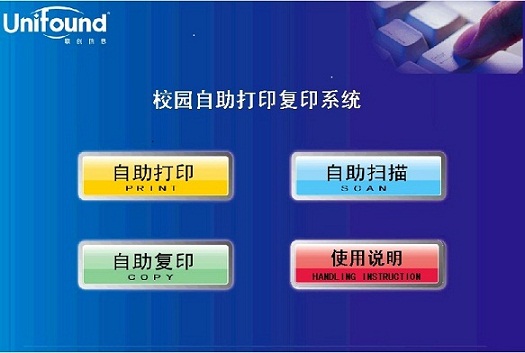 校园自助扫描真正实现扫描无人化管理。全校师生可在校园内任意一台装有本系统刷卡端的机器上,方便地使用校园卡刷卡确认开始扫描,并在扫描任务结束后刷卡完成缴费。